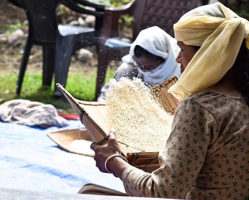 Use the paddle to carefully lift and separate the rice grains‚ ensuring even distribution and preventing sticking. Avoid excessive stirring‚ as this can make the rice mushy.